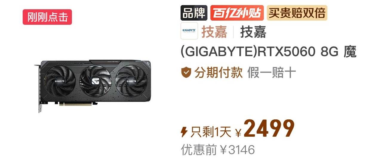 【2499】技嘉5060 魔鹰 三风扇,用拼多多v3券-50