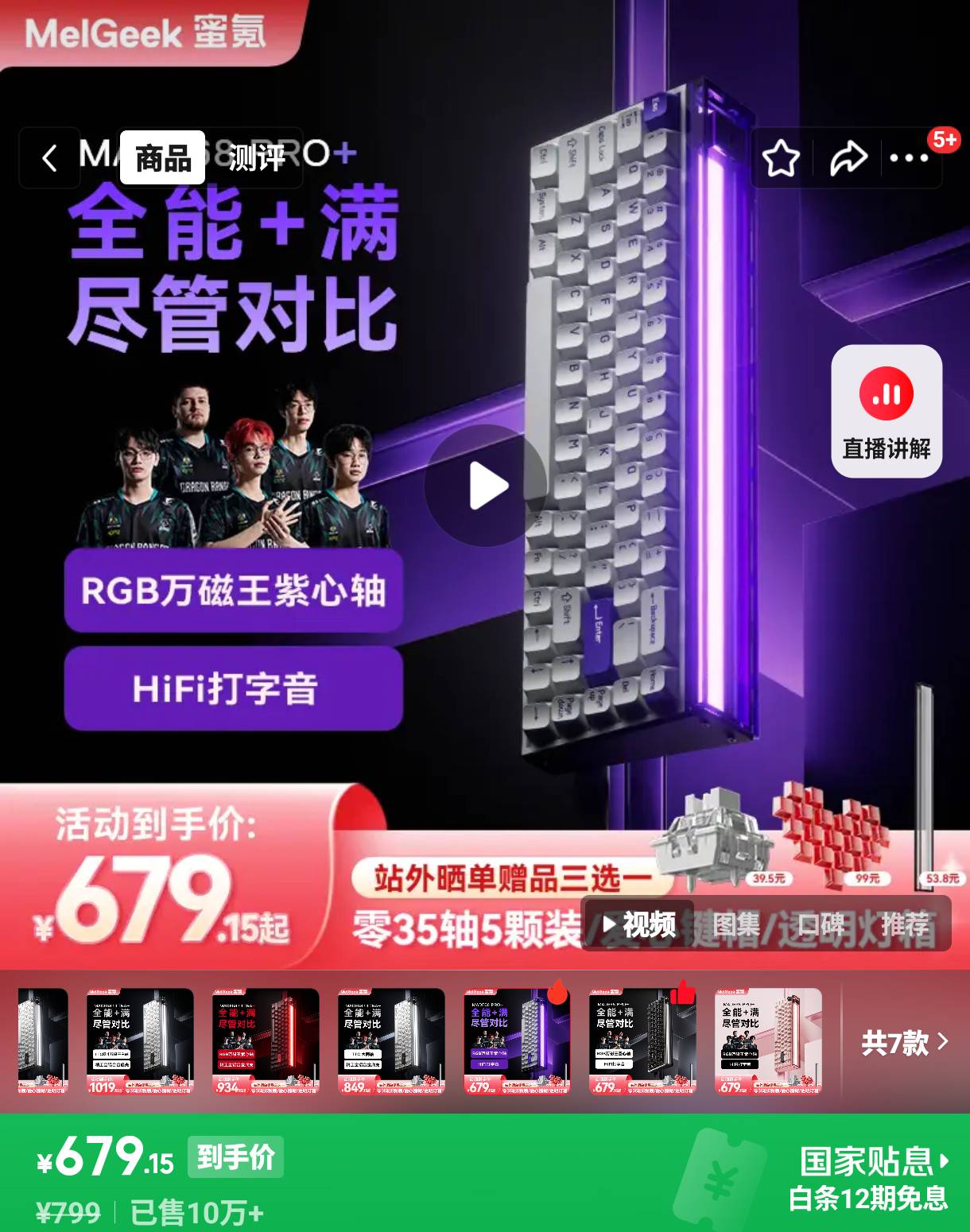 MelGeek蜜氪 MADE68PRO+磁轴键盘小蜜蜂68ULTRA万磁王TTC轴电竞游戏无畏契约客制化机械键盘 MADE68PRO+紫光-紫心轴