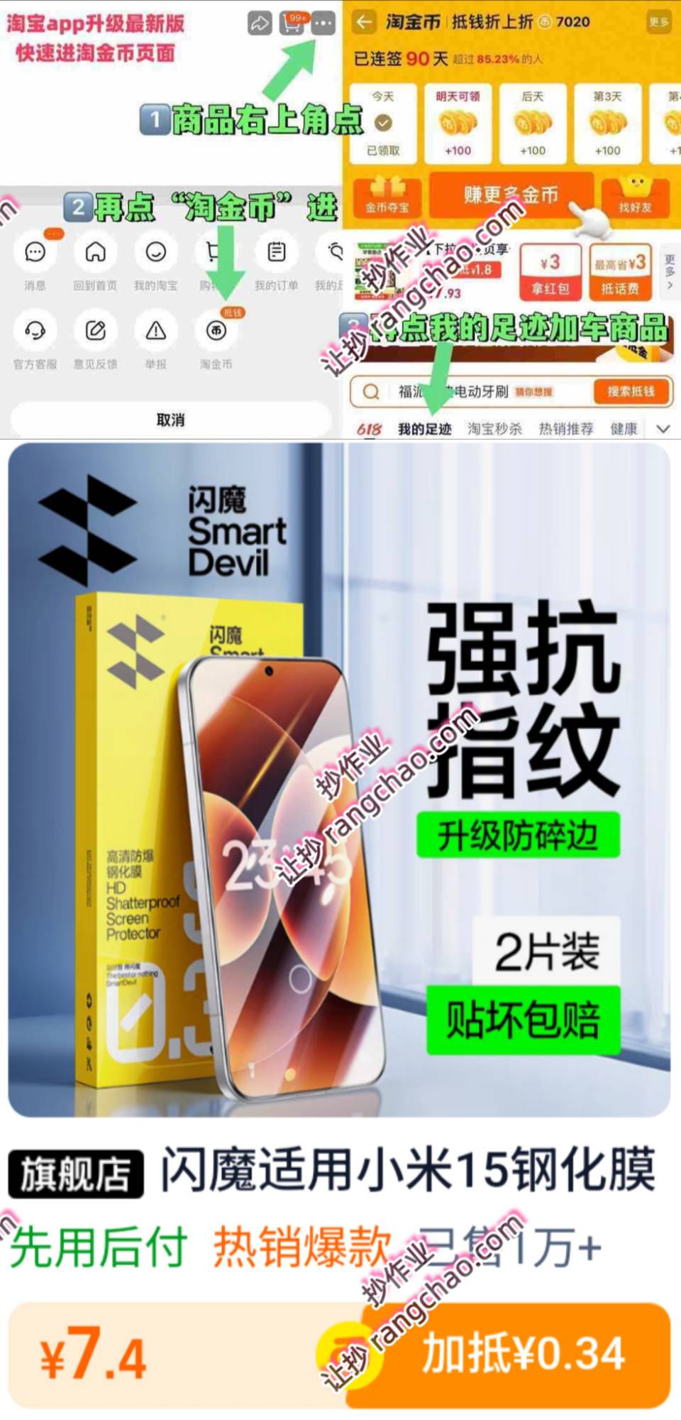 闪魔小米系咧高青纳米标准三倍抗指纹2片+贴膜神器贴坏包赔7.9