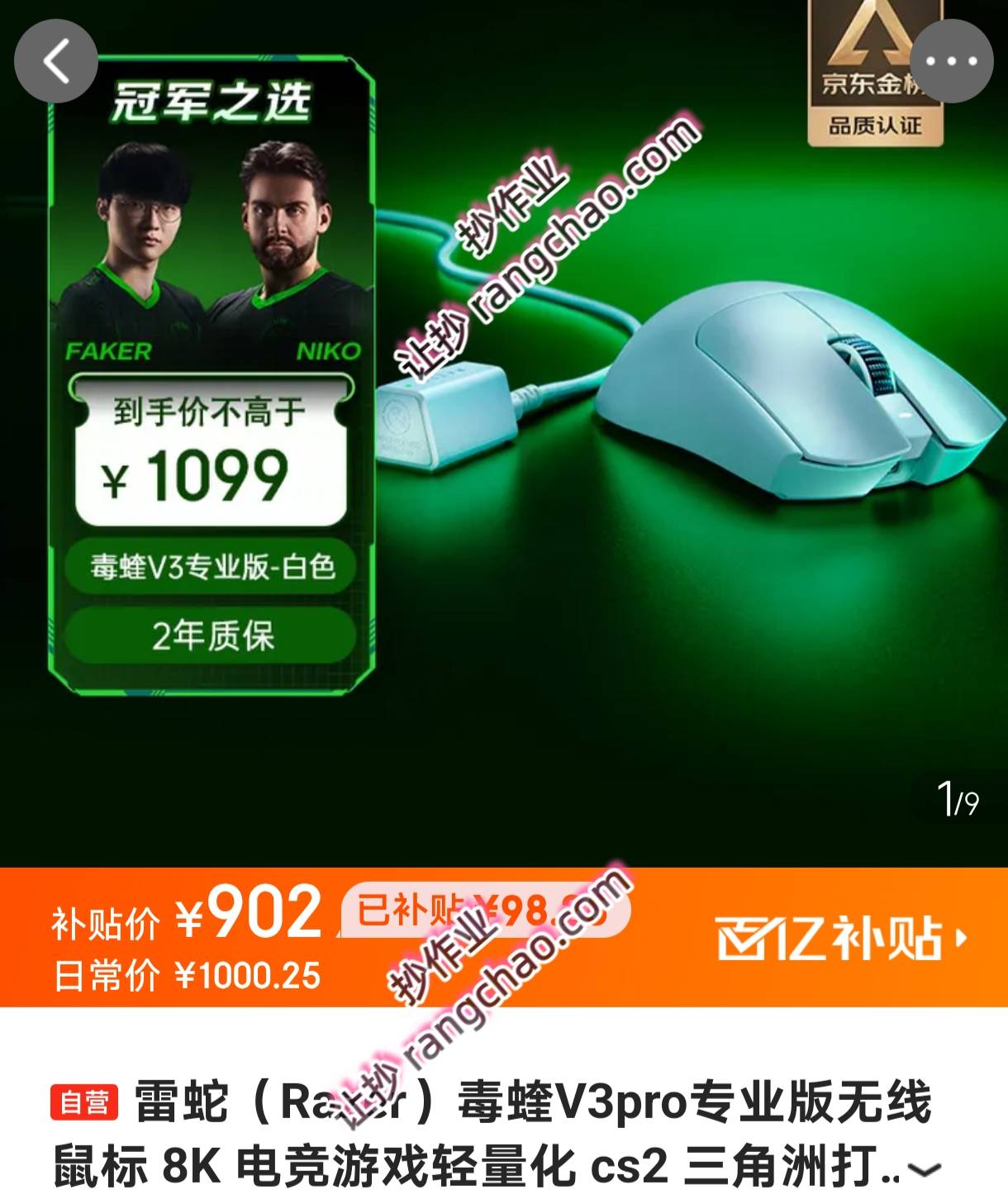 亰东字营【902】雷蛇 毒蝰V3pro专业版无线鼠标 8K 电竞游戏轻量化 https://u.jd.com/NgVKBnS