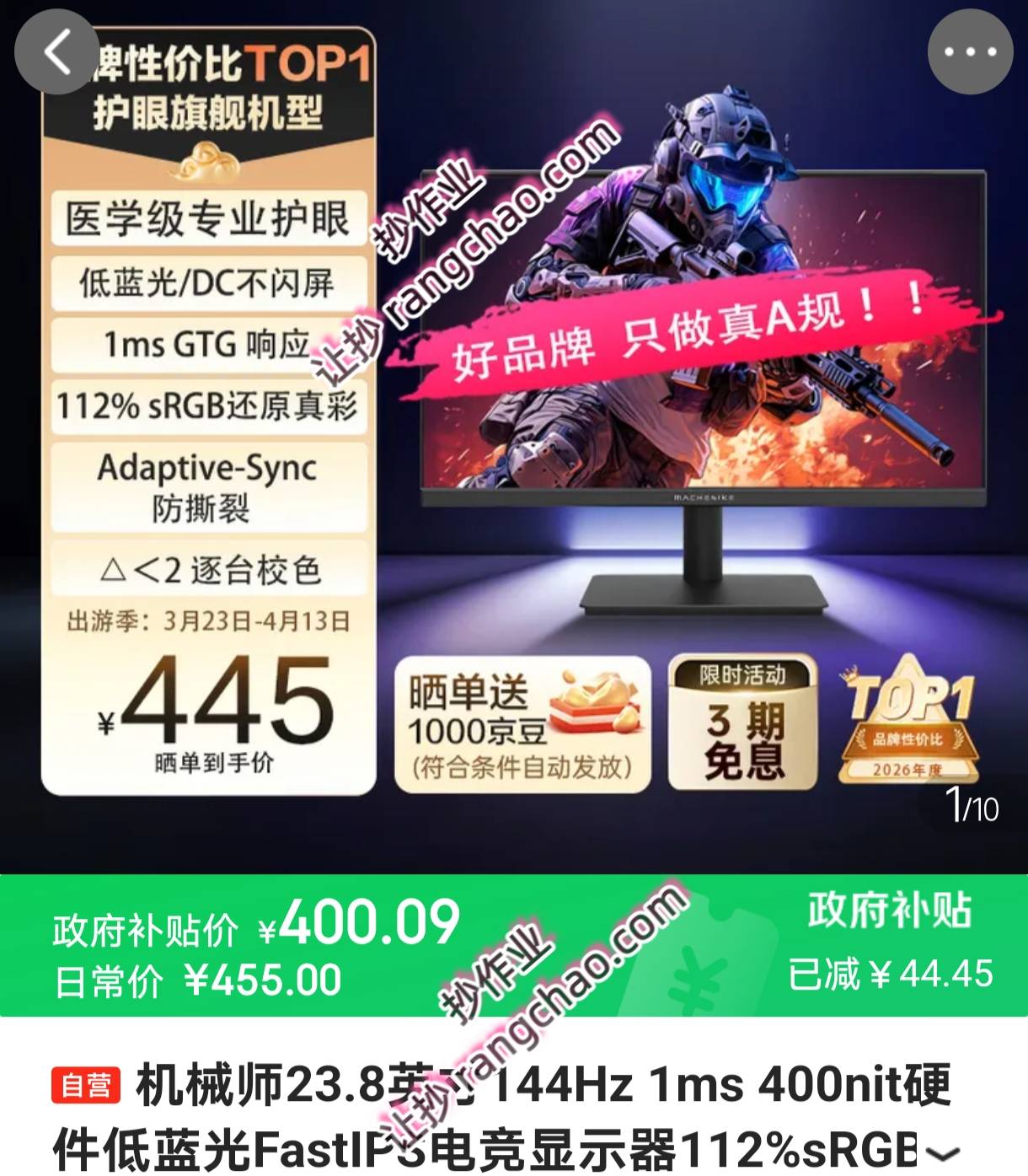 机械师23.8英寸 144Hz 1ms 400nit硬件低蓝光FastIPS电竞显示器【390晒返10】,紫米45W氮化镓苹果快充充电头1米快充线【39.9】,【248】小米手环9Pro 智能手环运动手环NFC