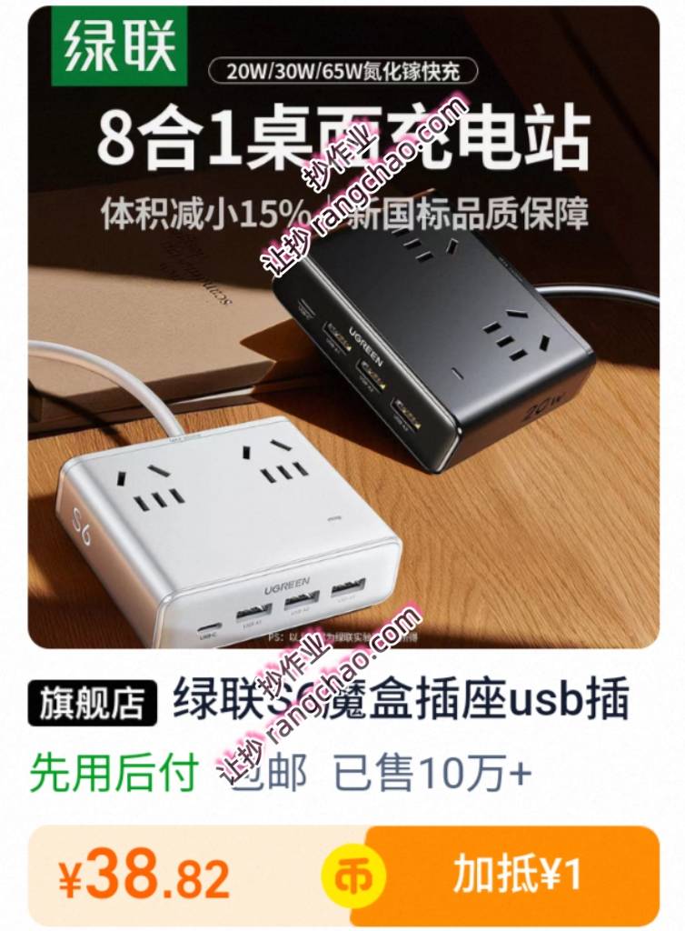 绿联20W快充8孔位全长1.5米 快充口4插位【39.9】
