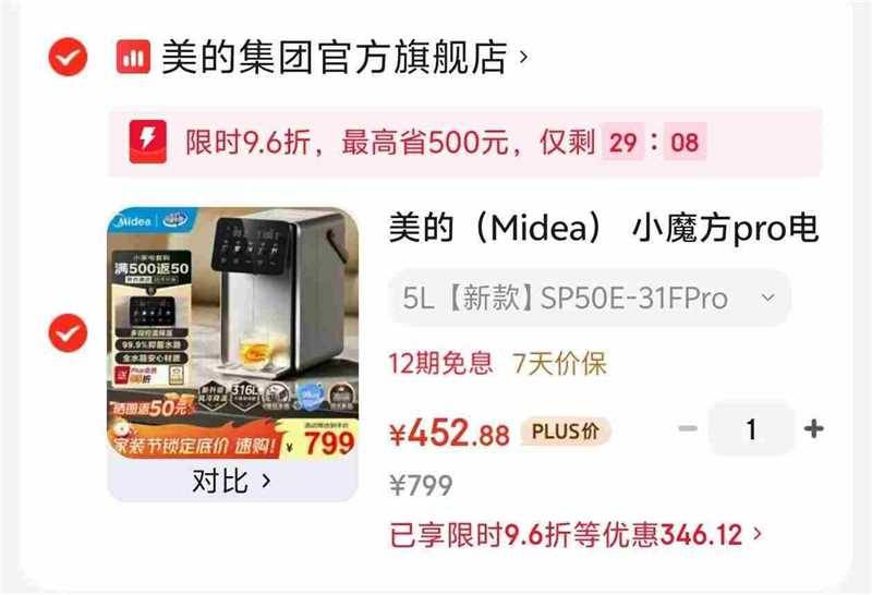 美的小魔方pro电热水瓶5L【395】