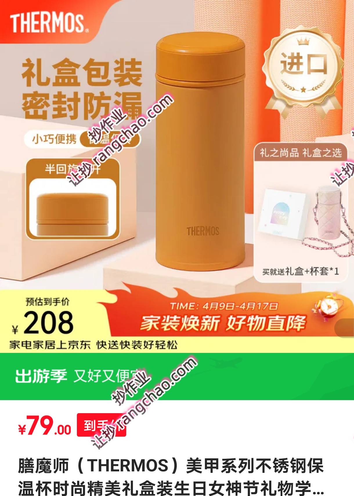 膳魔师美甲系咧不锈钢保温杯250ml鲤盒装附杯包,79