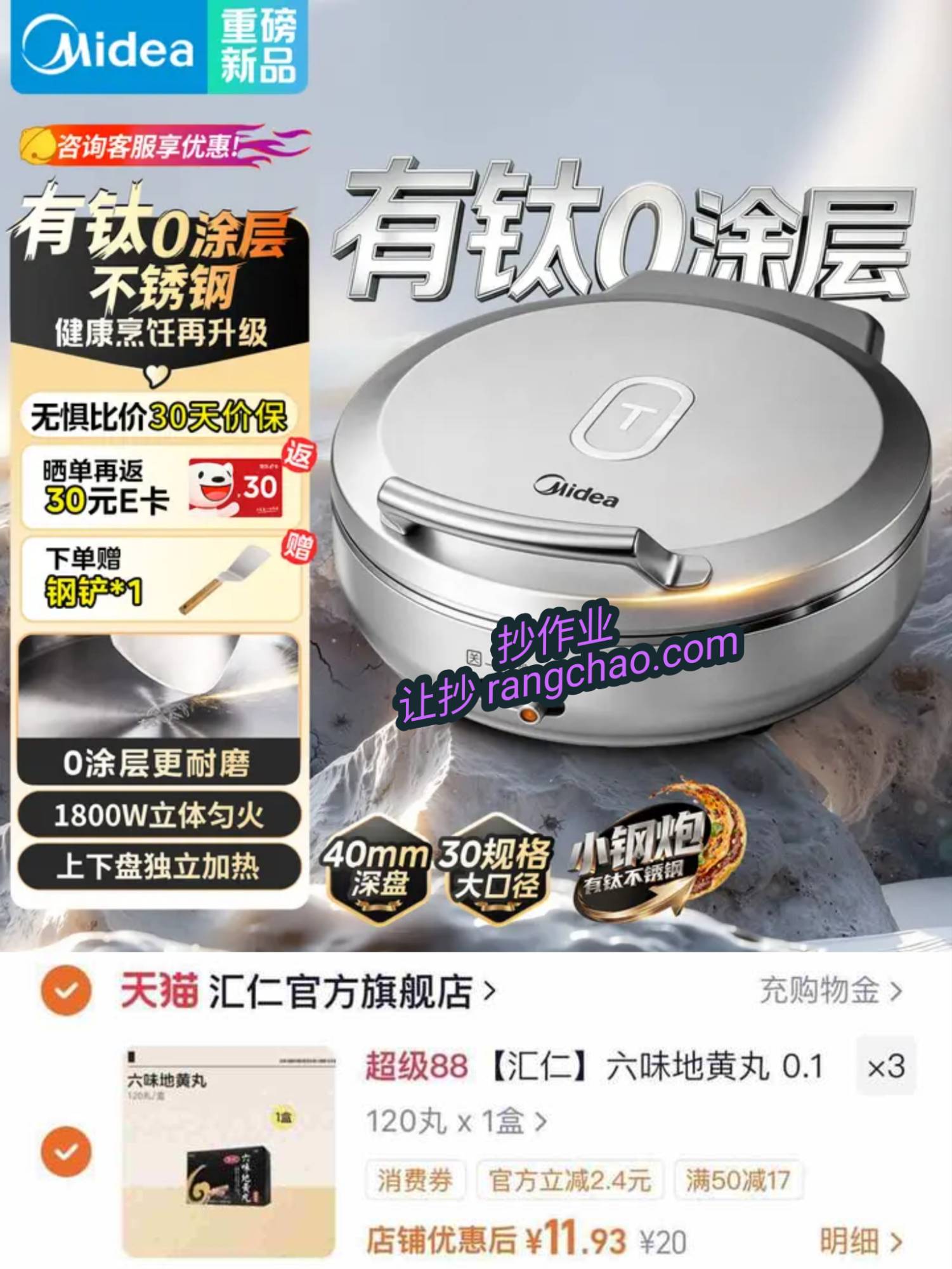 【242】新榀 美的有钛0涂层电饼铛,嗮饭30e卡+不要增榀饭90e卡(问愙服)+国卜+P|us95哲