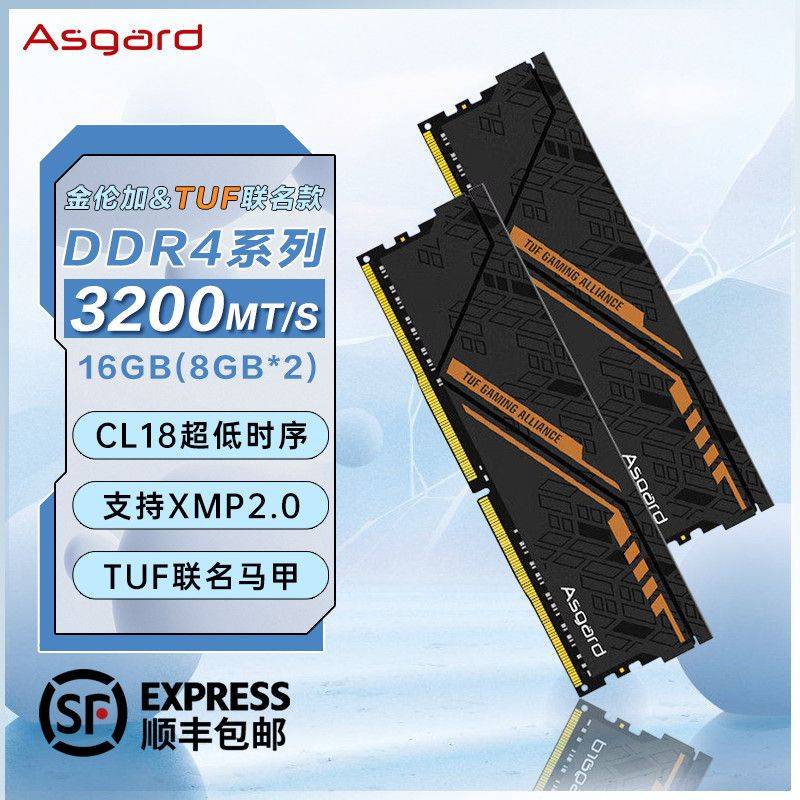 【593】 阿斯加特 华硕TUF联名16G 8*2 DDR4 3200频率C18 时序台式 内存套条