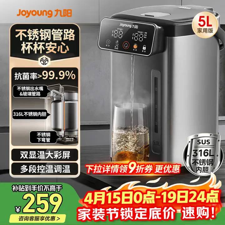 🔴九阳 WP571 恒温电热水壶 5L💰195