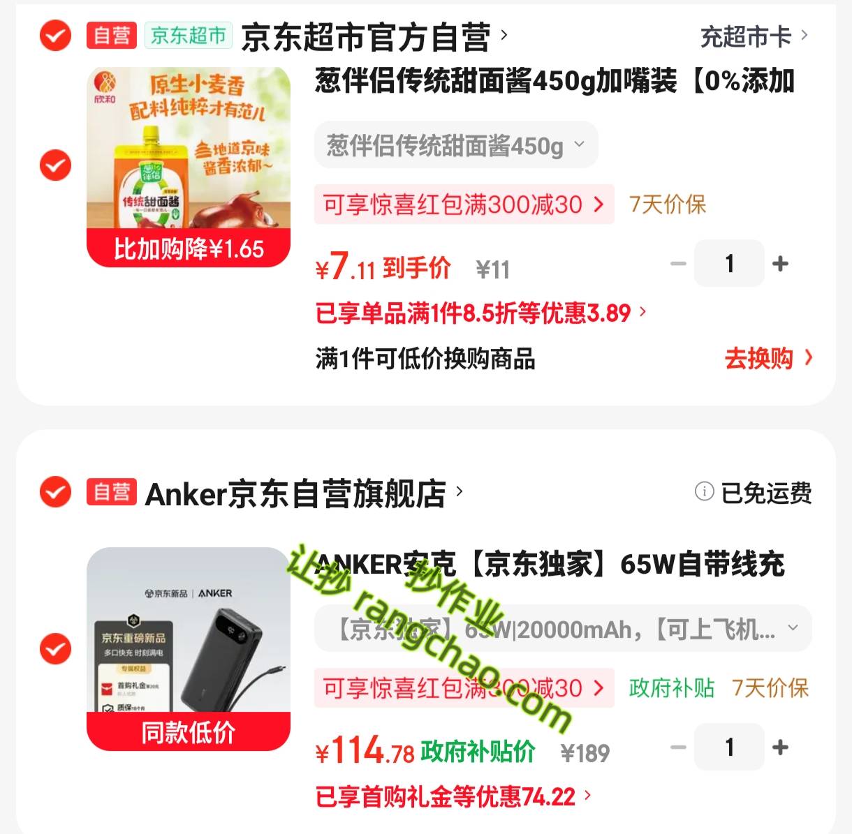 ANKER安克65W自带线充电宝20000mAh 115.46元