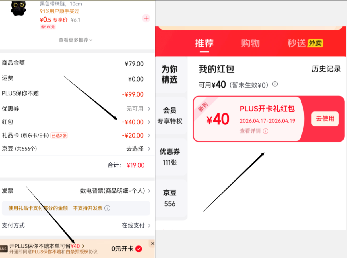 更新:京东plus开咔 只能购选0元开