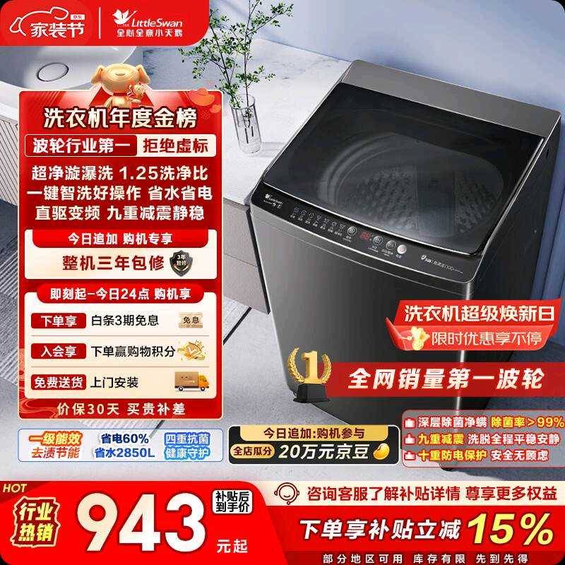 🔴小天鹅TB100V26DT 波轮洗衣机 10kg 金属钛