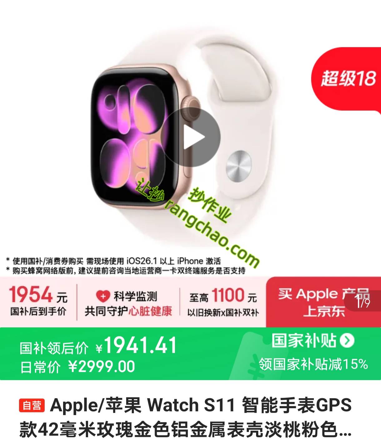 Apple Watch Series 11 智能手表 GPS版 42mm