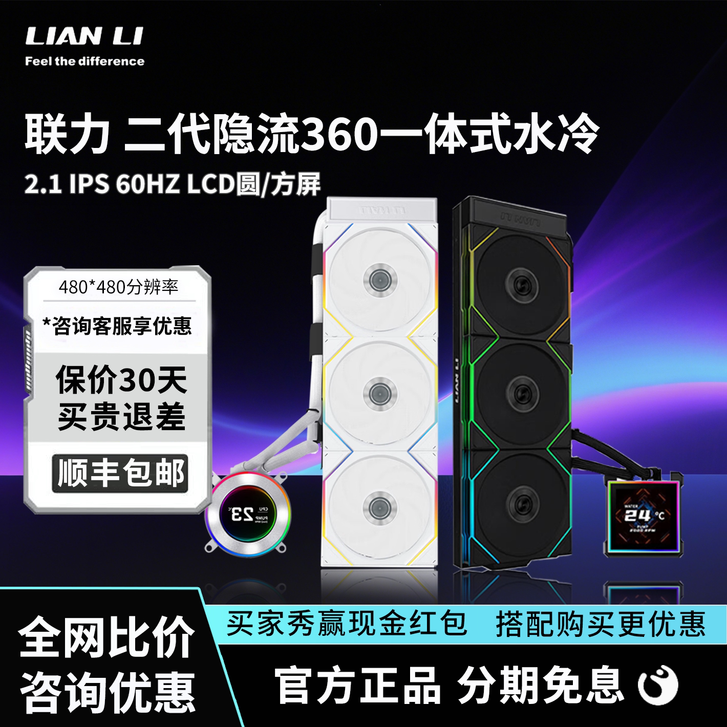 【1135】联力 隐流2代 无线TL版/标配4代积木/LCD屏360冷排一体式水冷散热器