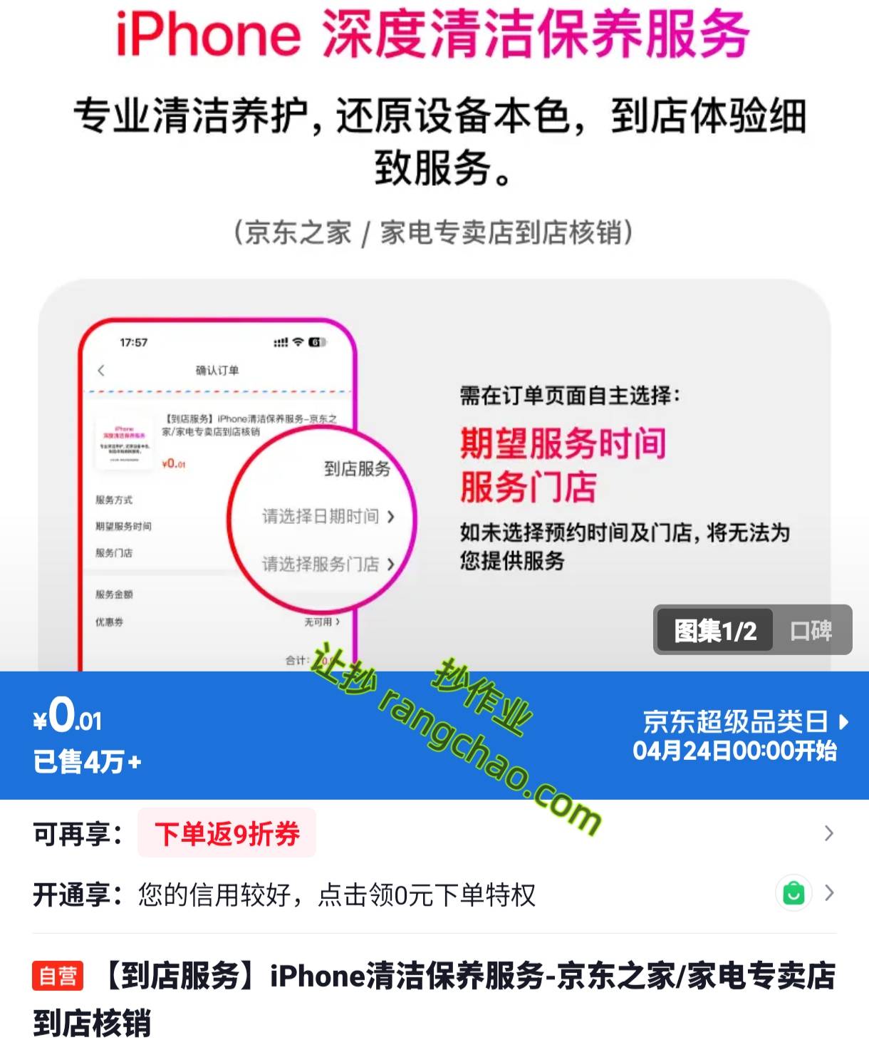 iPhone清洁保养服务-京东之家/家电专卖店到店核销【0.01】