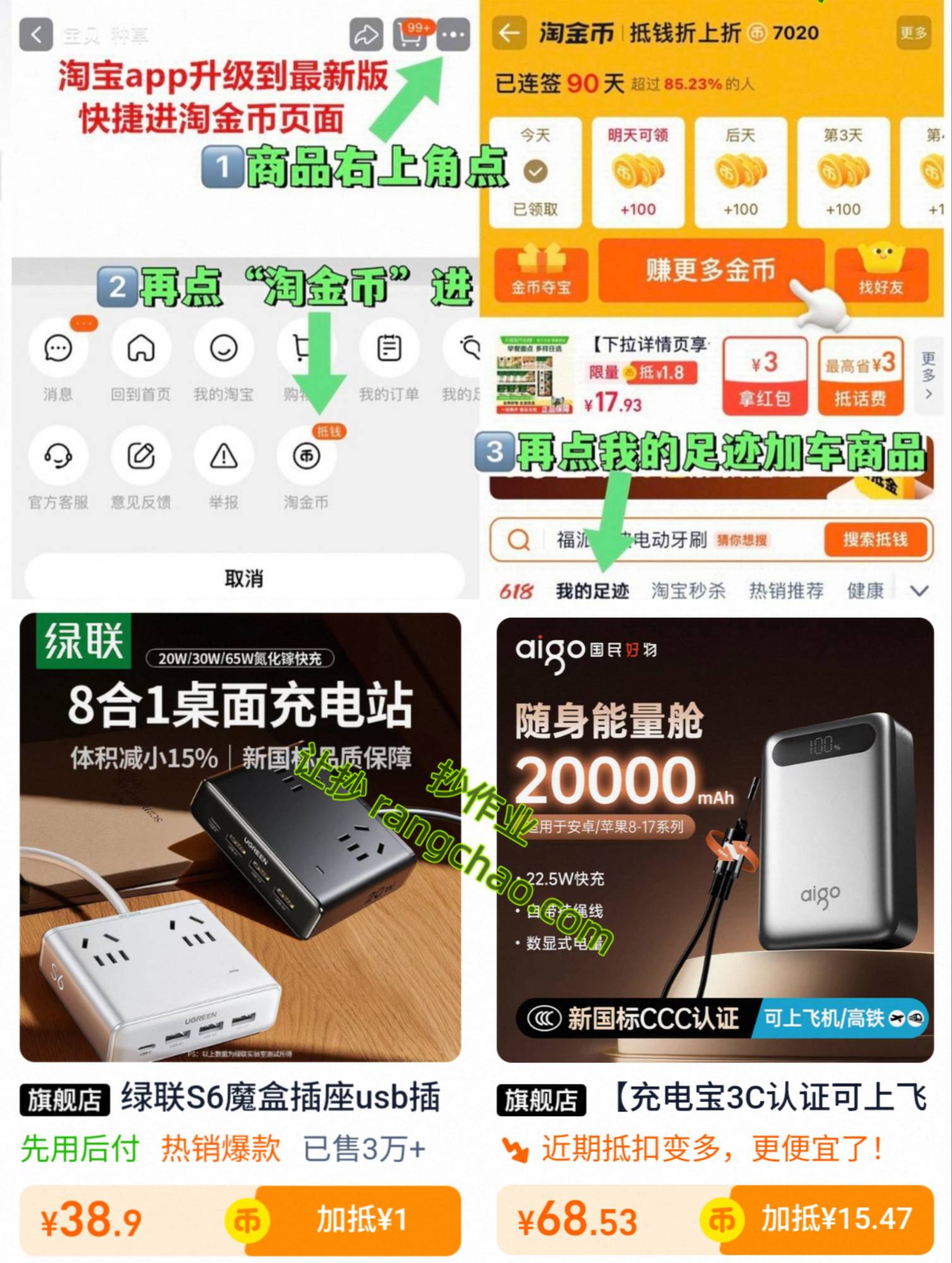 ❗宝贝右上角 ··· 点开➠ 右下角“淘金币”