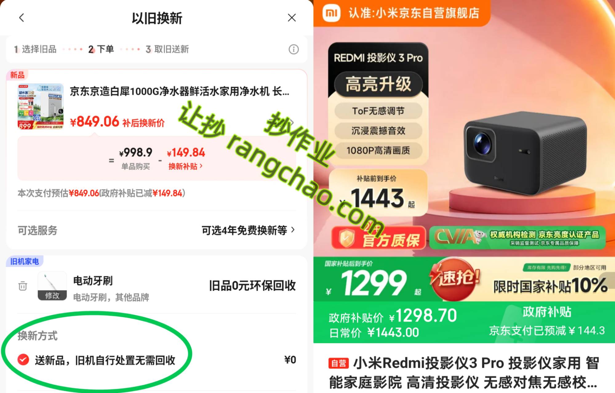 App商品页选以旧换新下蛋成立