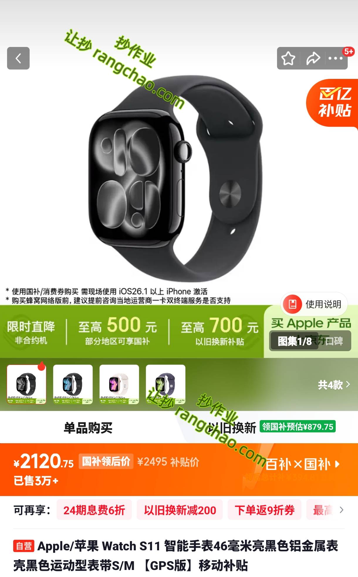 Apple Watch Series 11 46mm 智能手表GPS版,2120.75。vivo X300 12GB+256GB补贴3476.01。美菱1级能效+直流变频+纯铜电机电风扇【94.49】选择依旧换新,无需旧品,晒反50成立