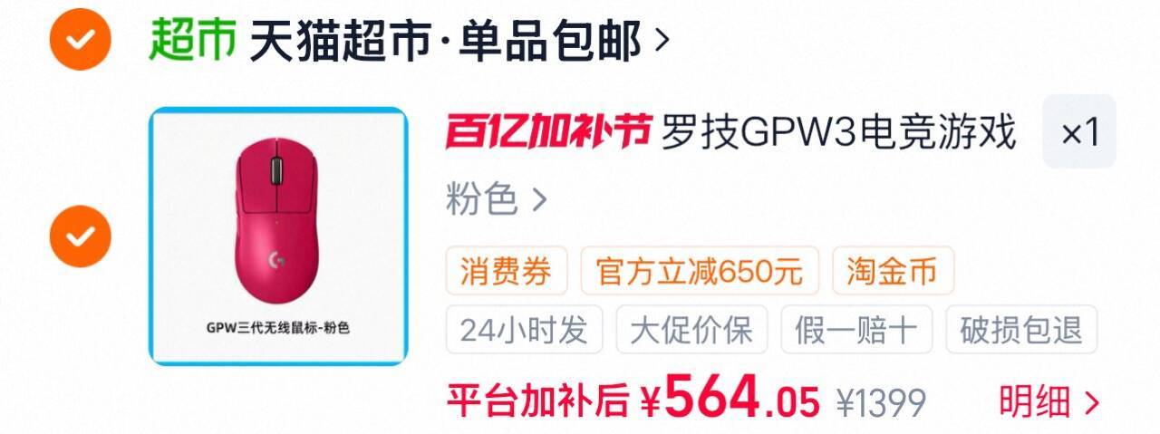 猫超自营【558】罗技GPW3 狗屁王3代 粉色 游戏鼠标