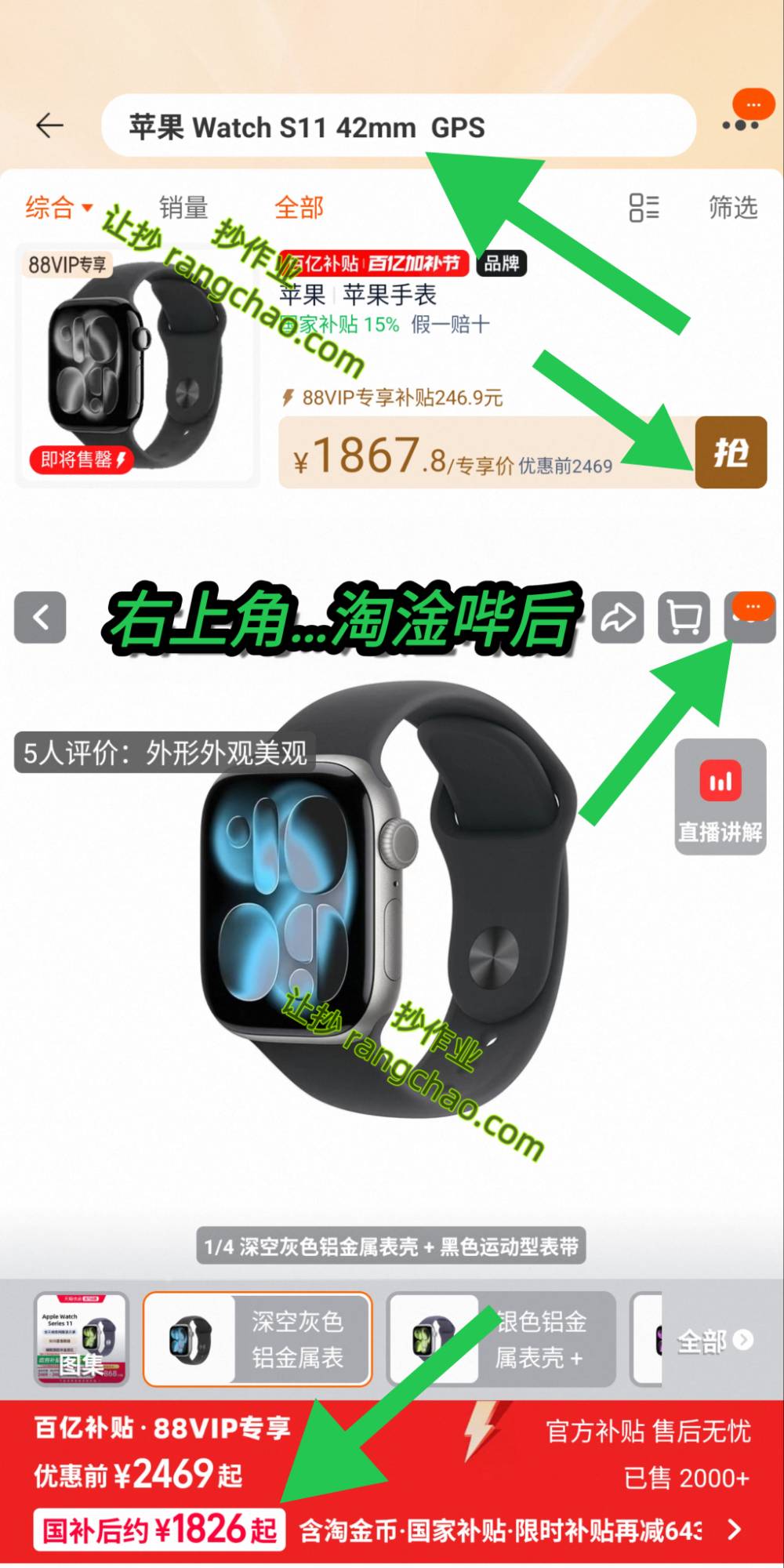 苹果 Watch S11 42mm GPS版 88vip,1826元