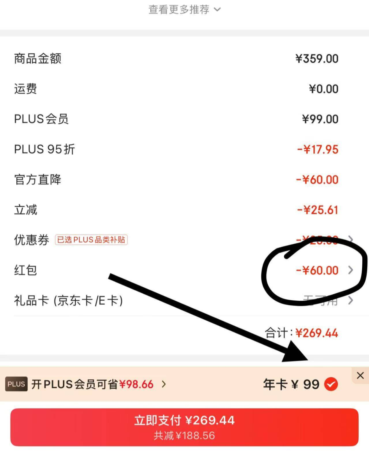 建议赠40以上🧧的都开一下~60🧧的确不多~618下个月就开始了,plus是刚需~