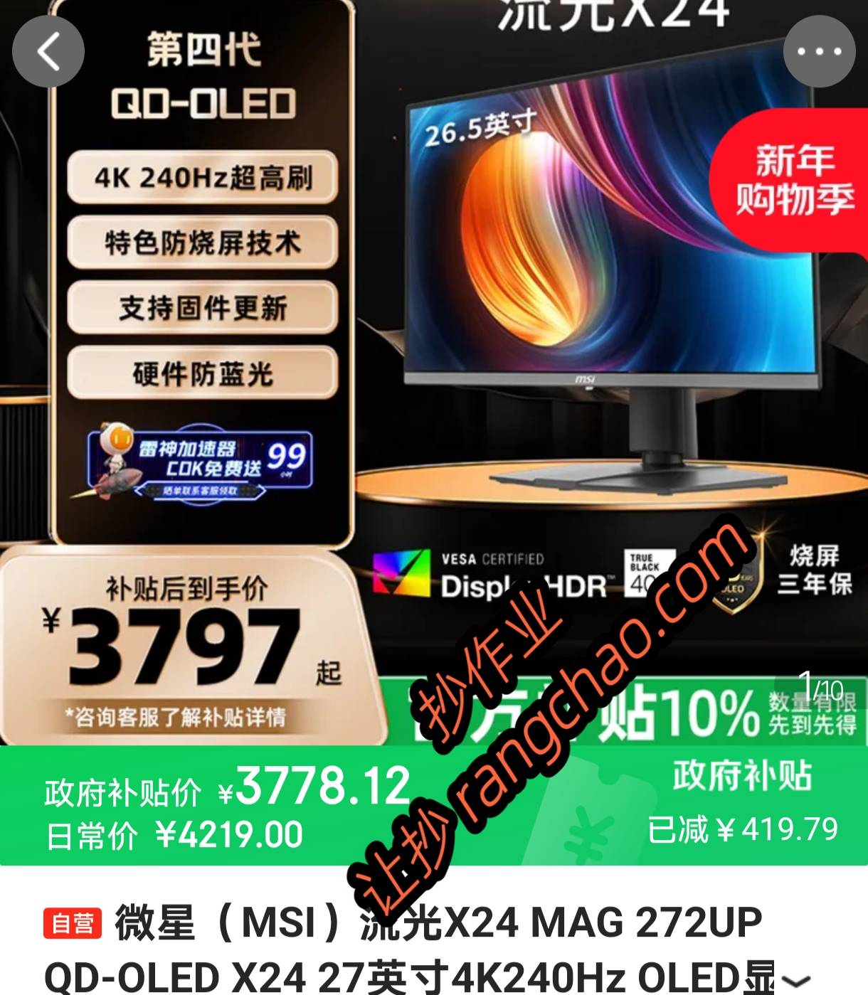 微星 流光X24 MAG 272UP 27英寸4K240Hz OLED 囯补3779