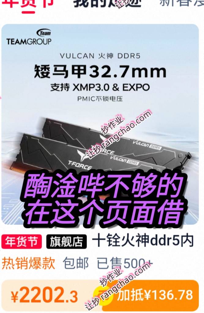 【2202】十铨 火神32G内存条6000 c28 16g*2