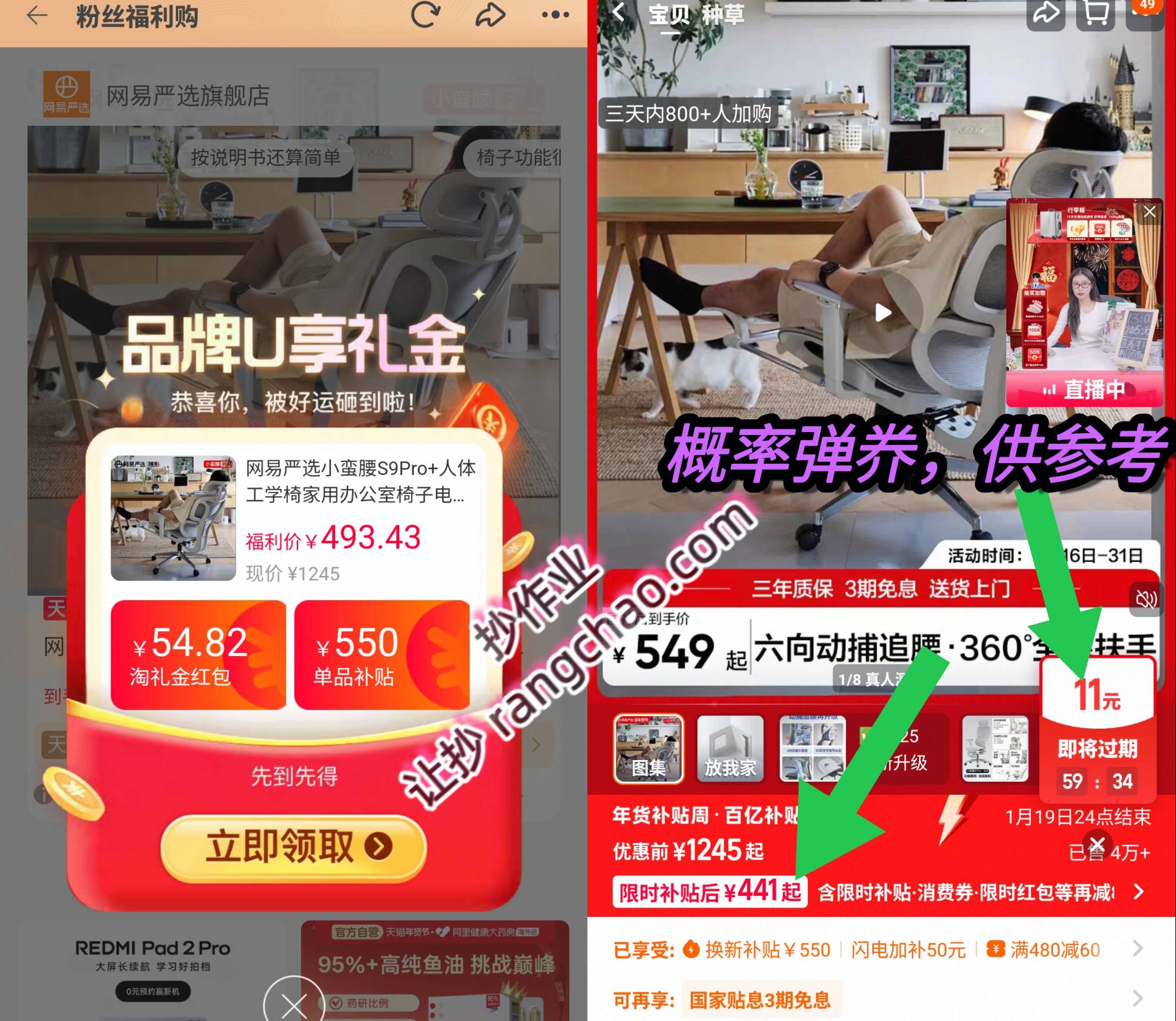 叠消fei券, 有礼淦,441-450亓起‼ 网易严选小蛮腰S9Pro人体工学椅