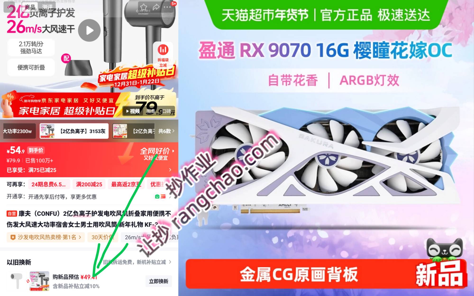 康夫2亿负离子护发电吹风机折叠家用【49.4】以旧换新(厨房小电-不需要回收) ,显卡 盈通9070 花嫁 ,菿手4025 ⭐右上角三个点进淘金幤抵扣 ⭐需充猫超卡,有送100后成立 ,骆驼大火山羽绒服防泼水鸭绒男女加厚【298】进页面随机弹9.5折