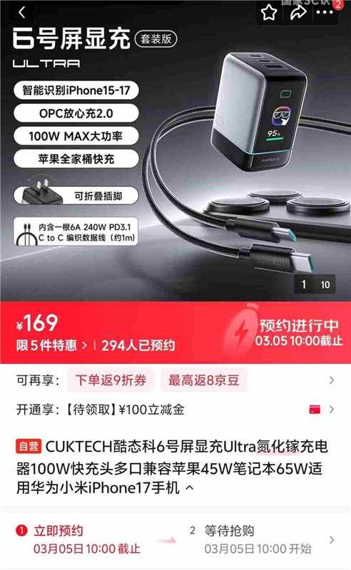 酷态科6号屏显充ultra💰169 先玉约,5呺开呛! 充电器