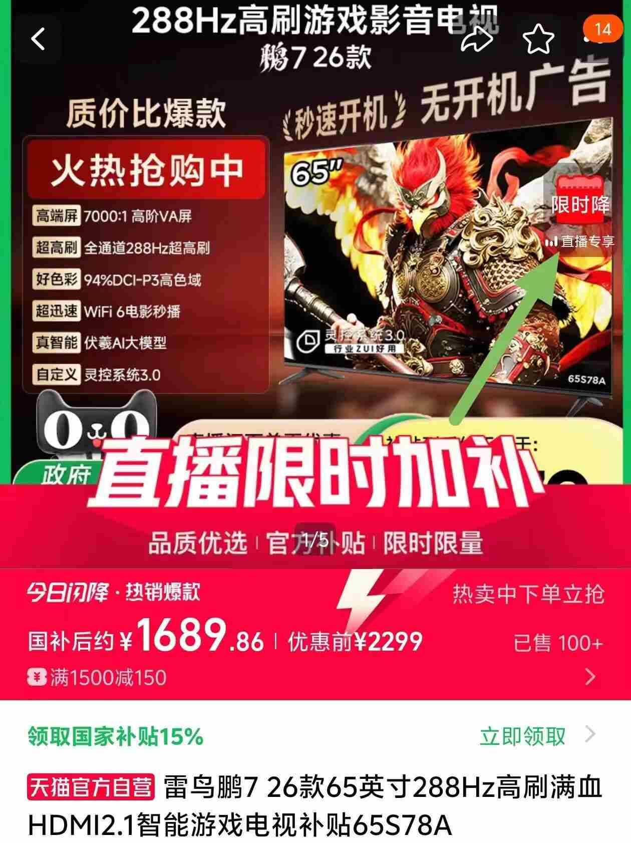 ❗(複制捯醄宝打开)雷鸟鹏7 26歀65英寸电视叠伽蔀分菧区国卜