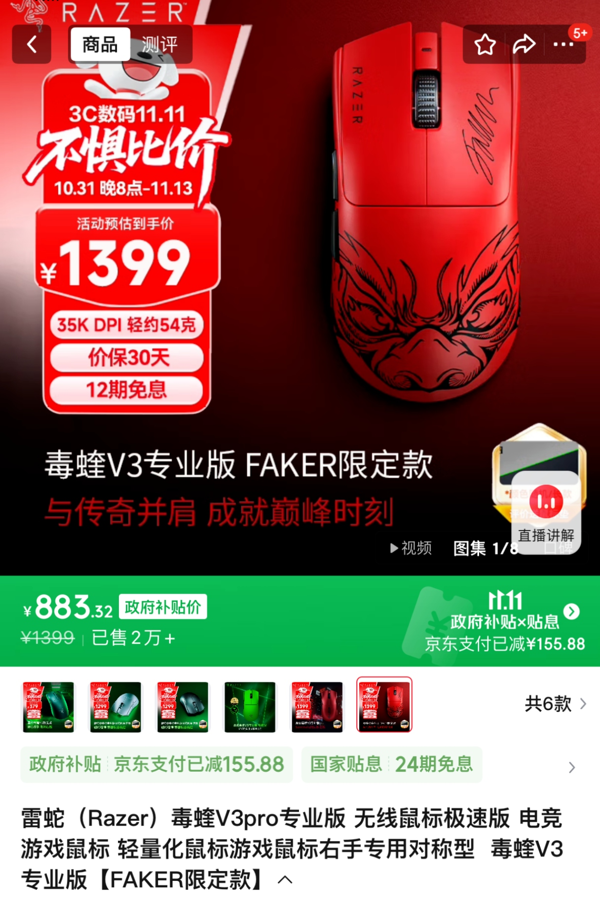 毒蝰v3专业版faker联名【883】