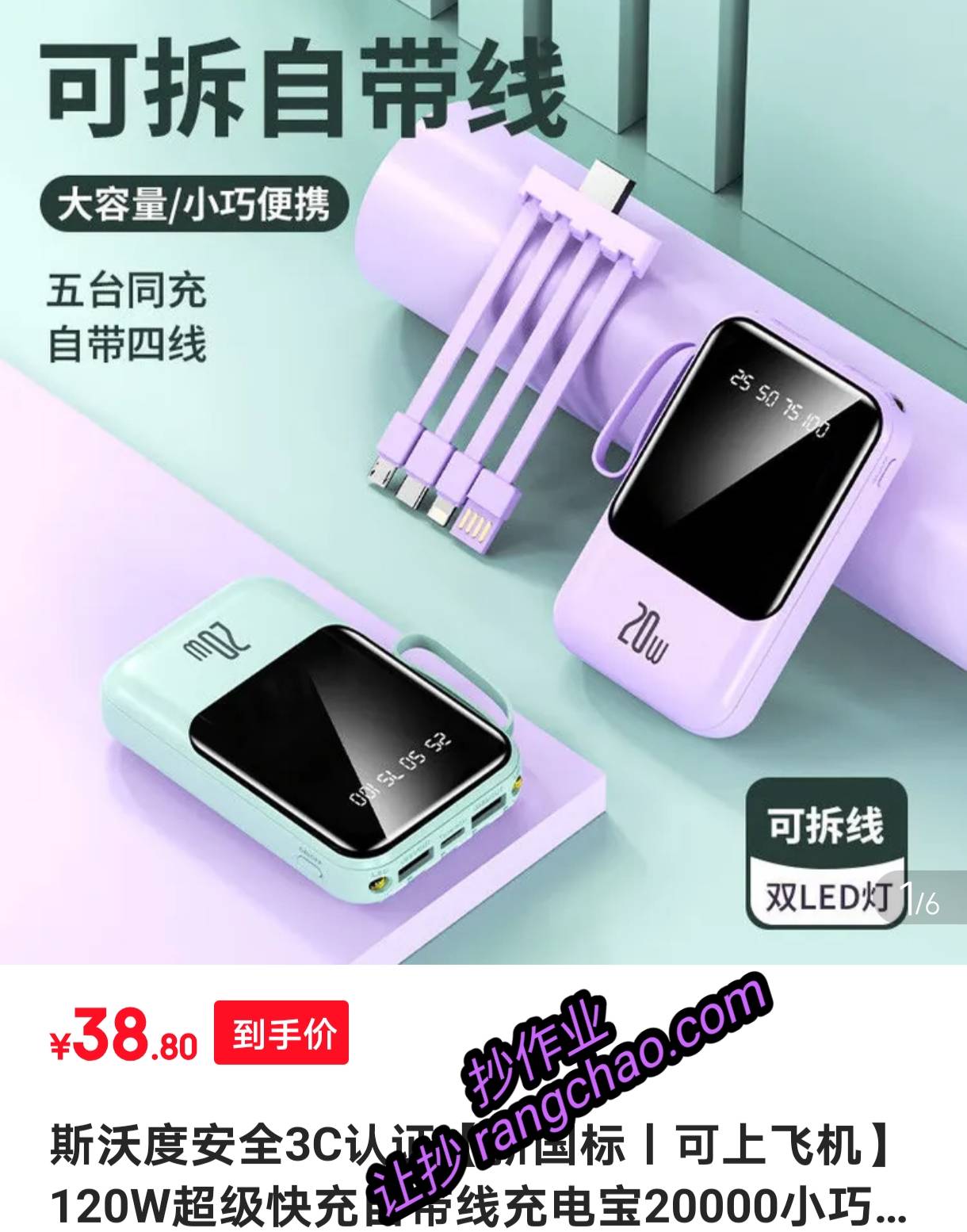 斯沃度 120W超级快充自带线充电宝20000mAh