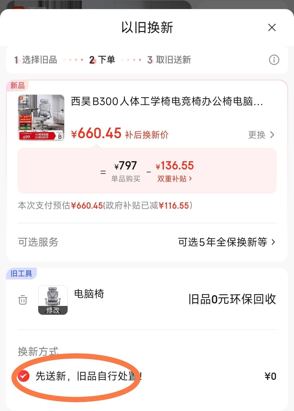 2️⃣需要选择–以旧换新–加车一件(没人上门回收的)