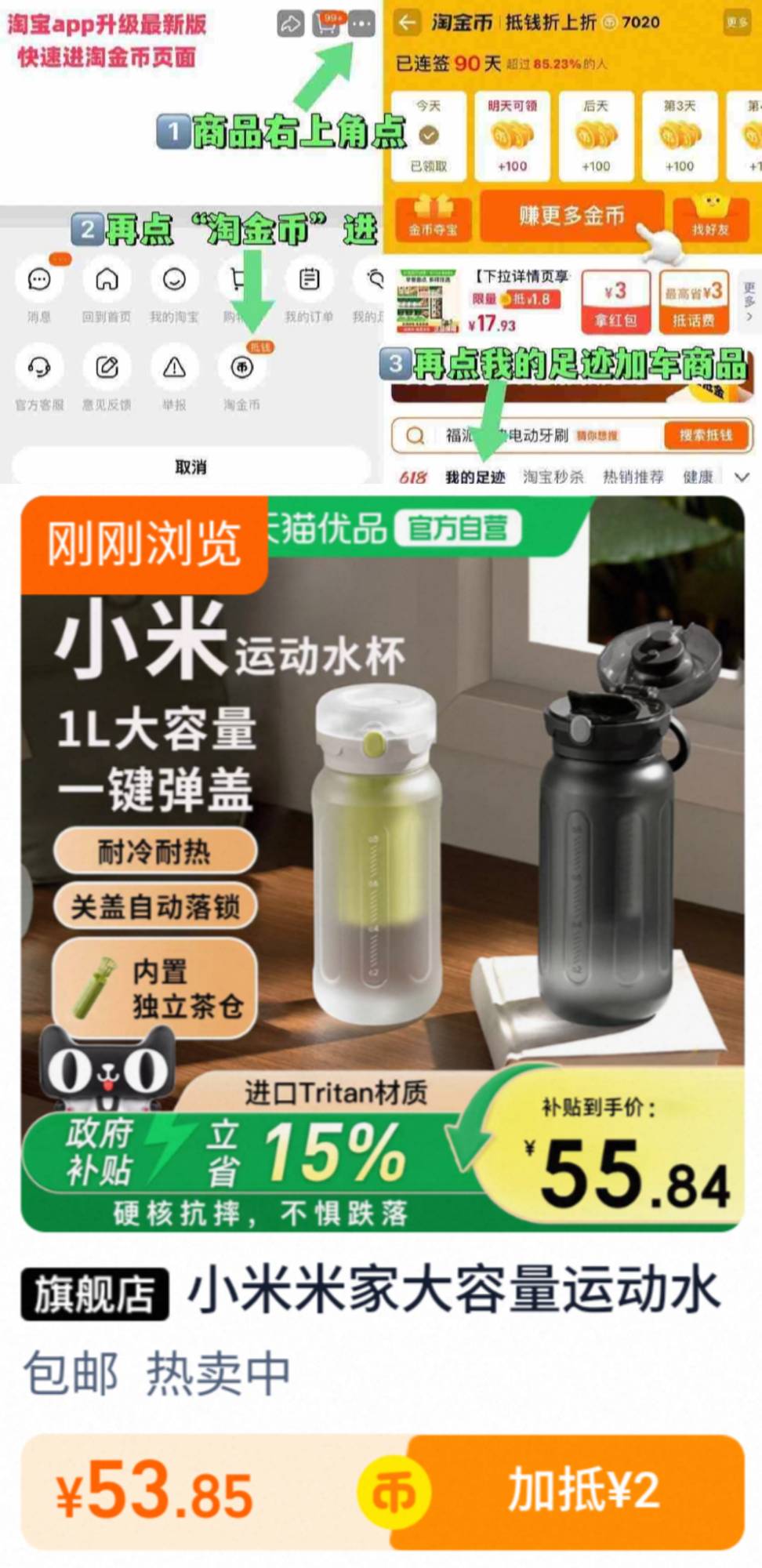 右上角(…)淘金币抵87元+🛒位置自凑!