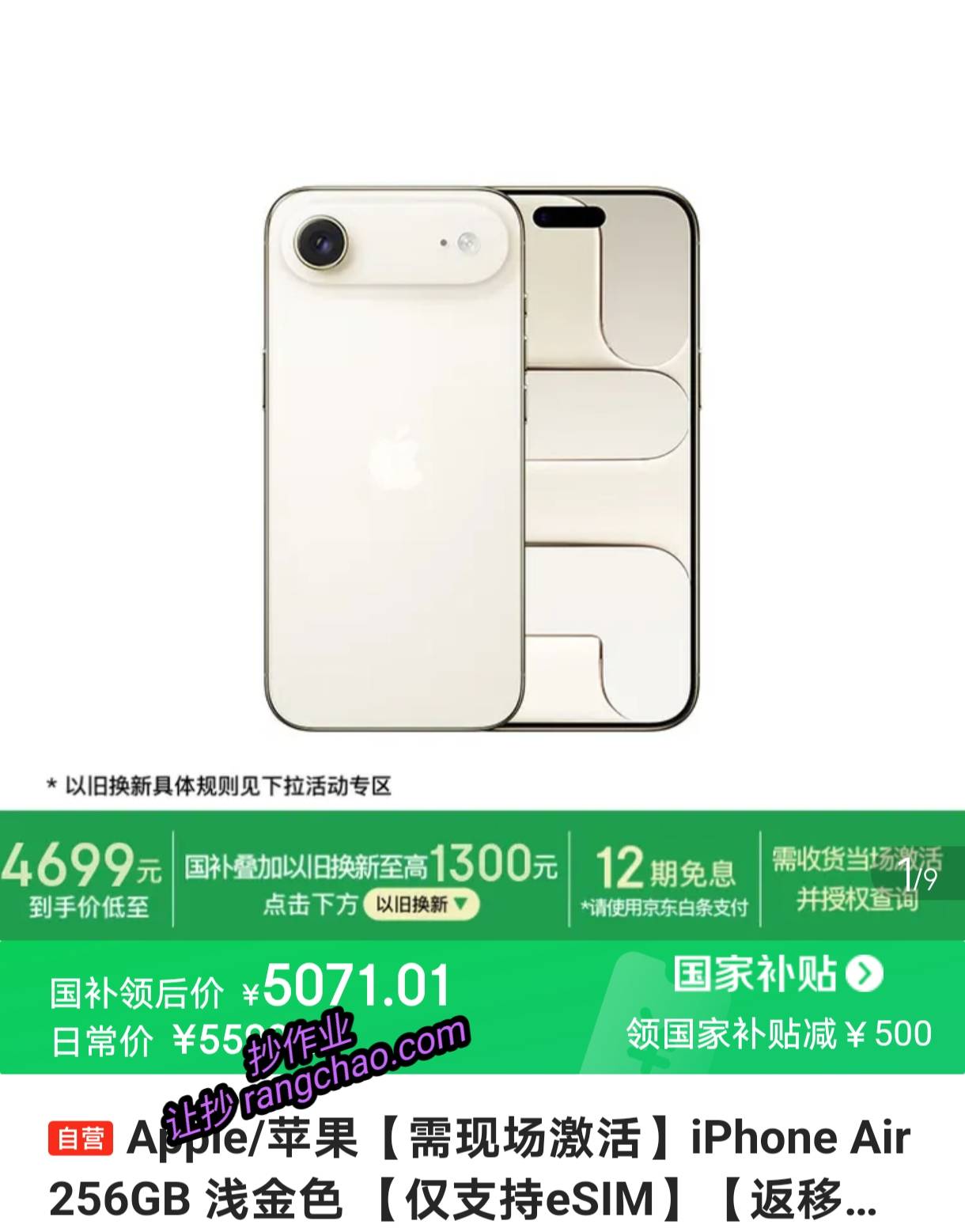 iPhone Air 256GB 仅支持eSIM【5071】国补