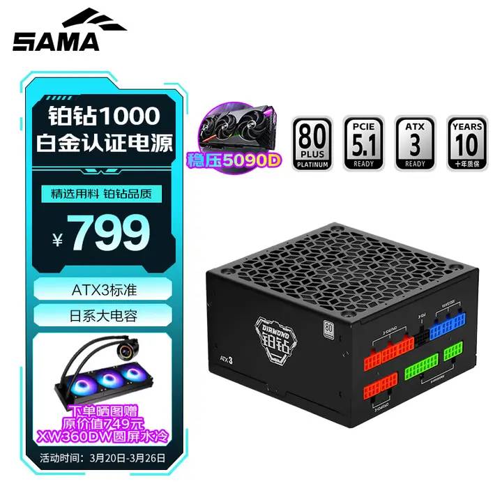 先马 铂钻1000W白金牌电源,到手799,赠XW360DW水冷