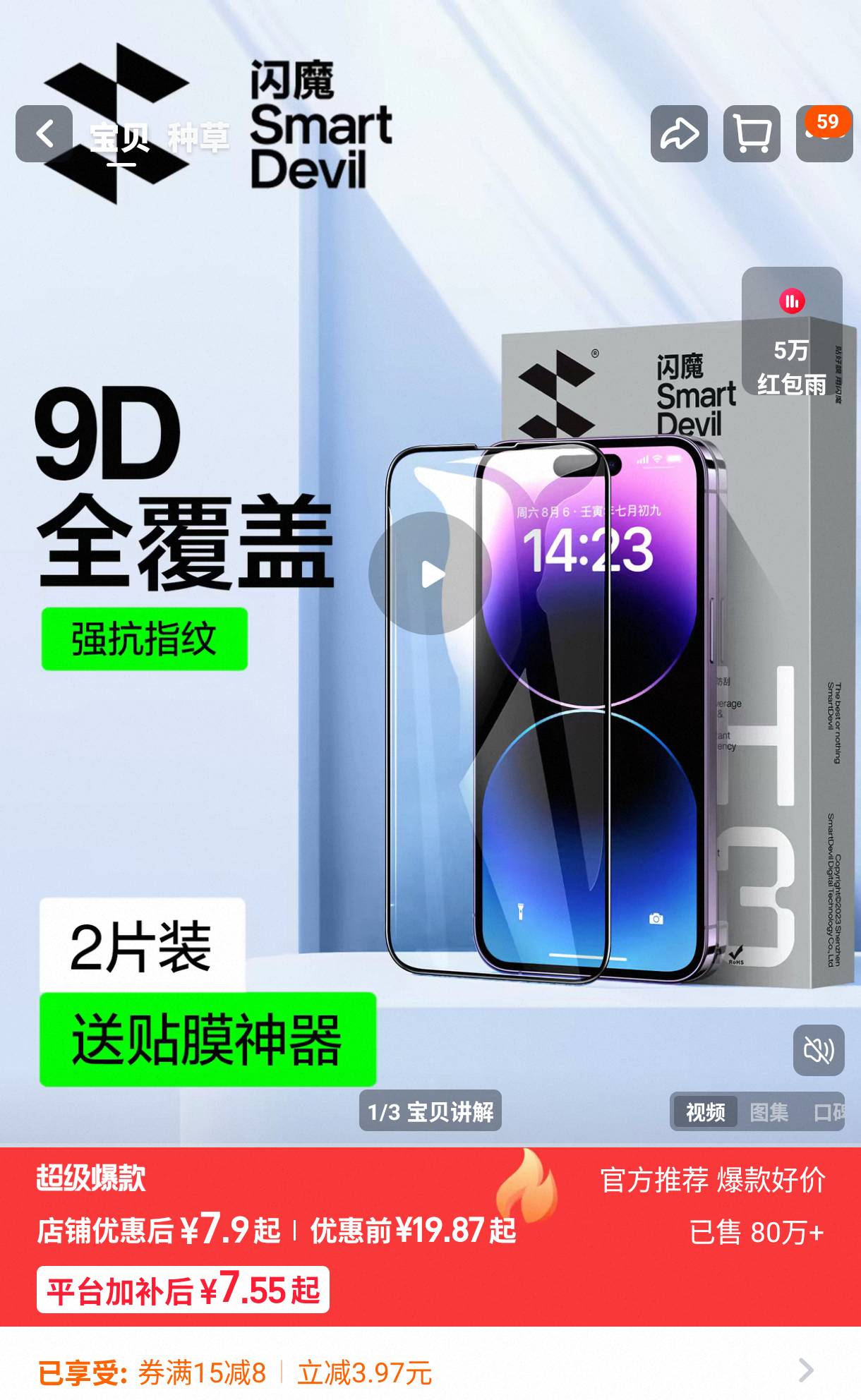 闪魔苹果钢化膜2片