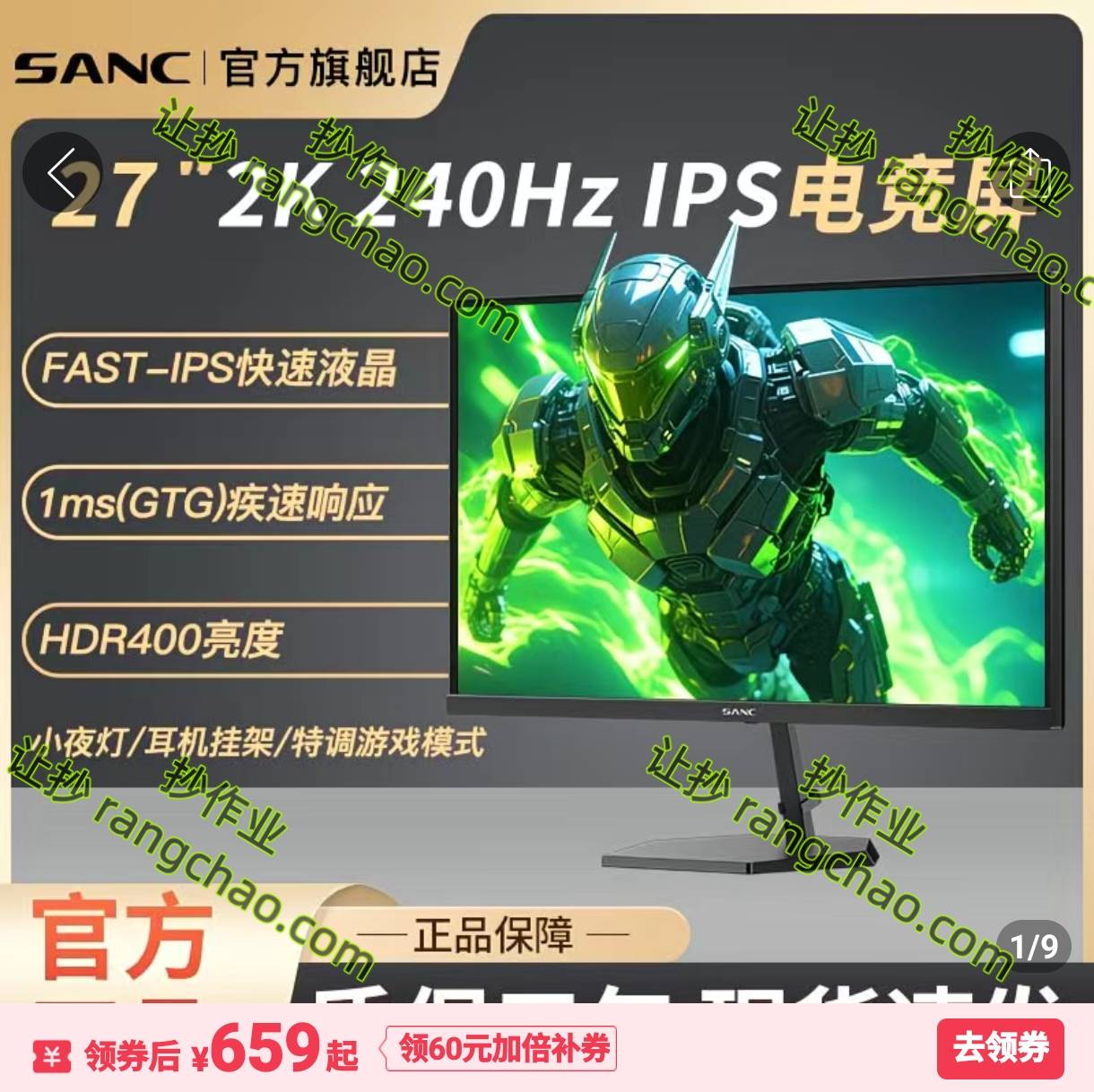 【659】SANC显示器27英寸2K240Hz1ms响应Fast IPS低蓝光电竞游戏M2763QVG
