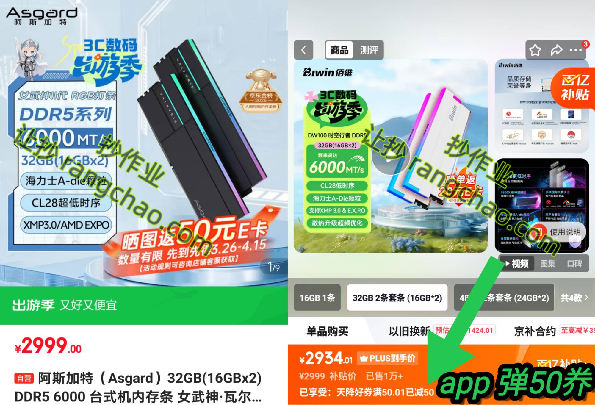 亰东字营 【2914嗮饭20】 佰维 时空行者DW100 32G(16G×2)套装 DDR5 6000 C28台式机内存条 RGB灯条 https://u.jd.com/j18RrST