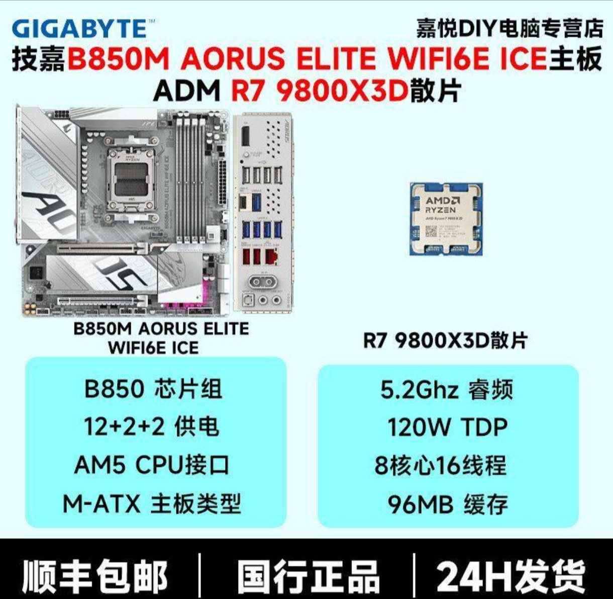 【3499】9800X3D 散片 + 技嘉B850M AORUS ELITE WIFI6E ICE 板U套装,需要用v3荟員奍