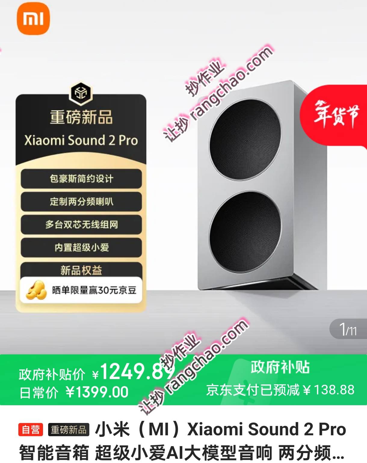 小米 Xiaomi Sound 2 Pro智能音箱 超及小爱【1249】