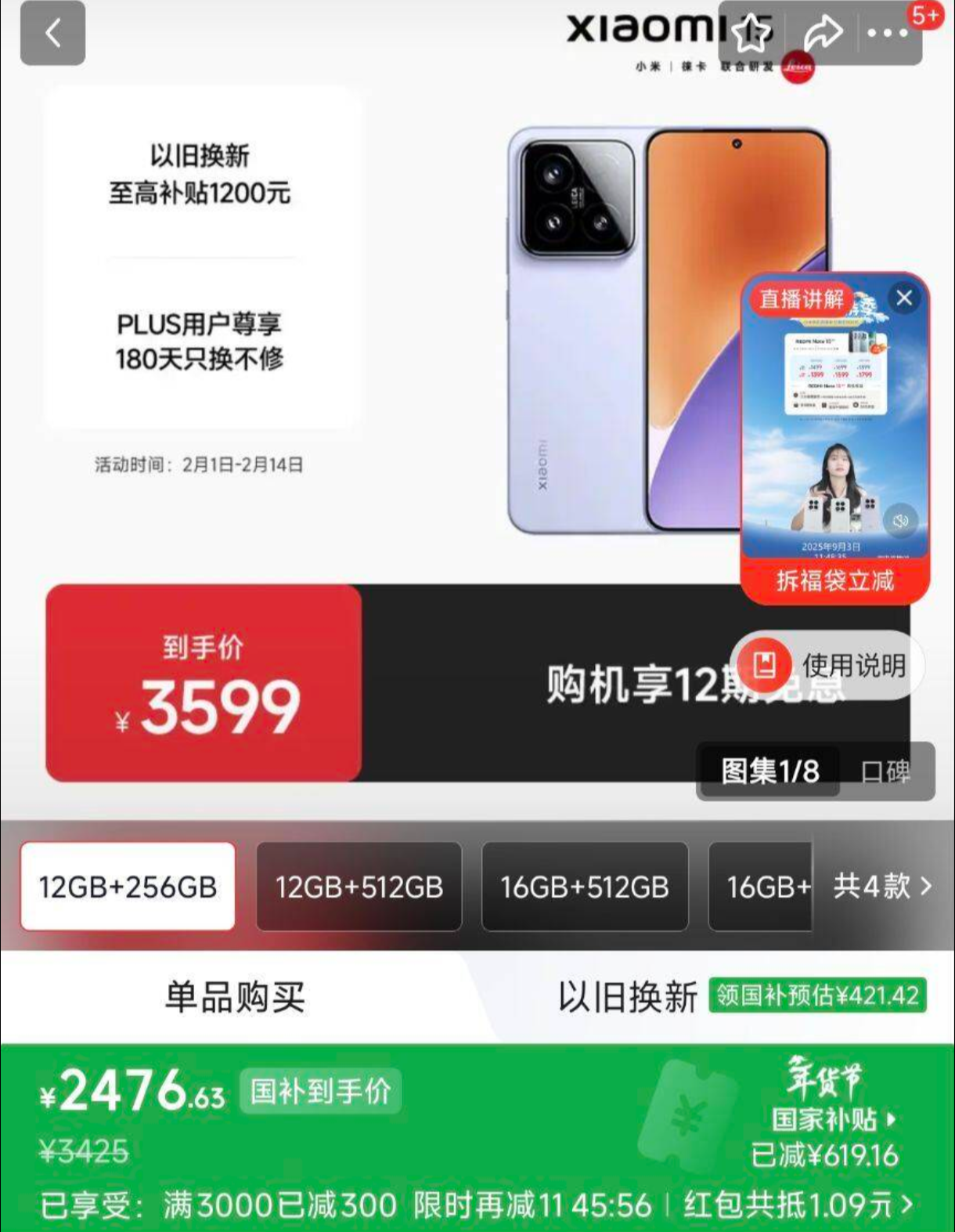 小米15 12+256G【2476】国卟,蔀分呺弹限时减11
