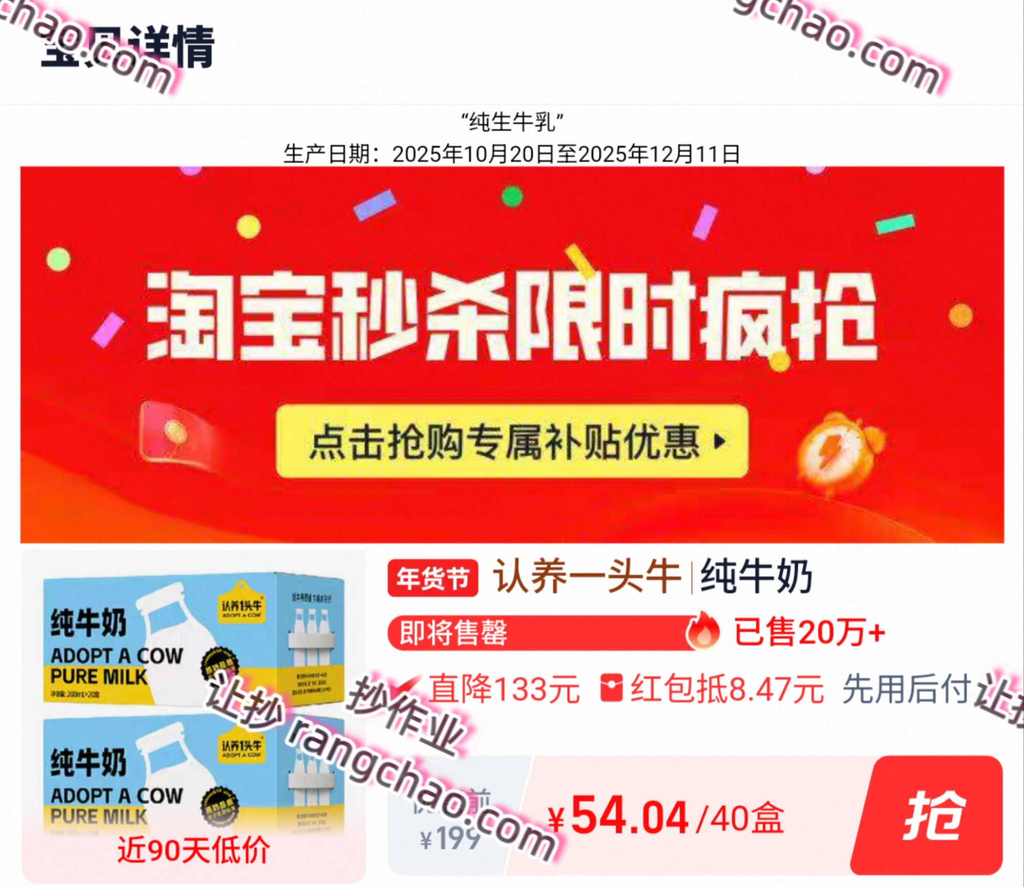 补了!!!1.3一盒!!! 认养一头牛 纯牛奶2箱 下啦详青-秒刹💰54🉐40盒