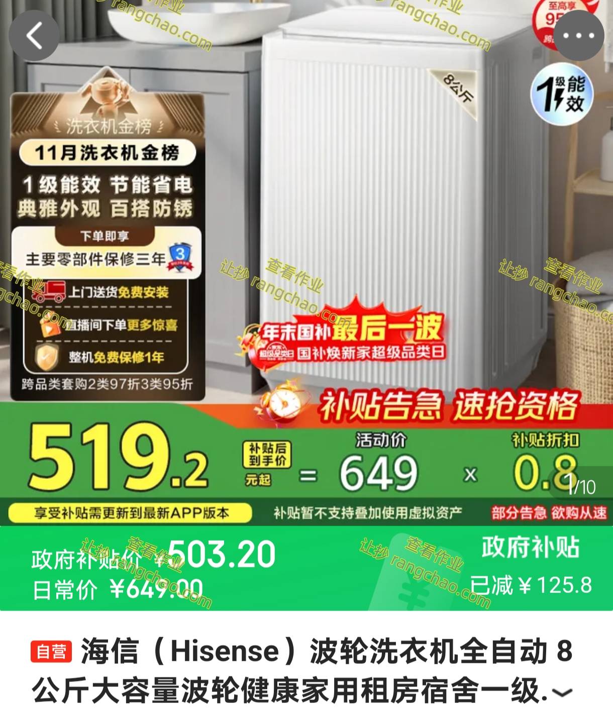 海信 WT80N1Q 波轮洗衣机 8公斤