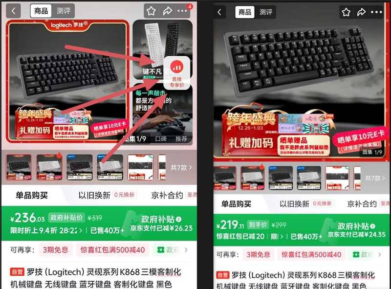 ❶【228.54 嗮图10后】罗技灵砚 K868 三模客制化机械键盘