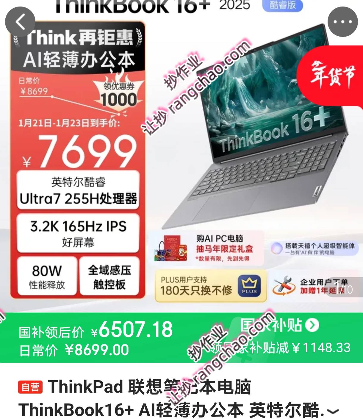 ThinkPad 笔记本电脑 16+ 2代Ultra Ultra7 255H 32G 1T 3.2K【6507】国卟