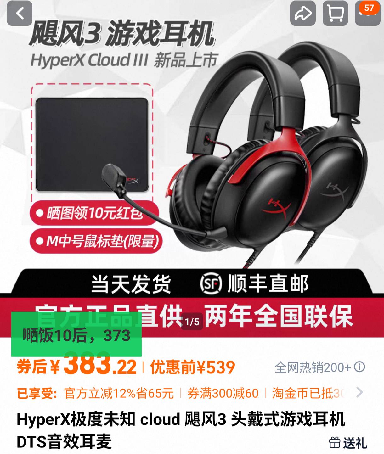 ❗複zhI倒tá0.寶咑開【373.22 嗮图10后】飓风3头戴式游戏耳机